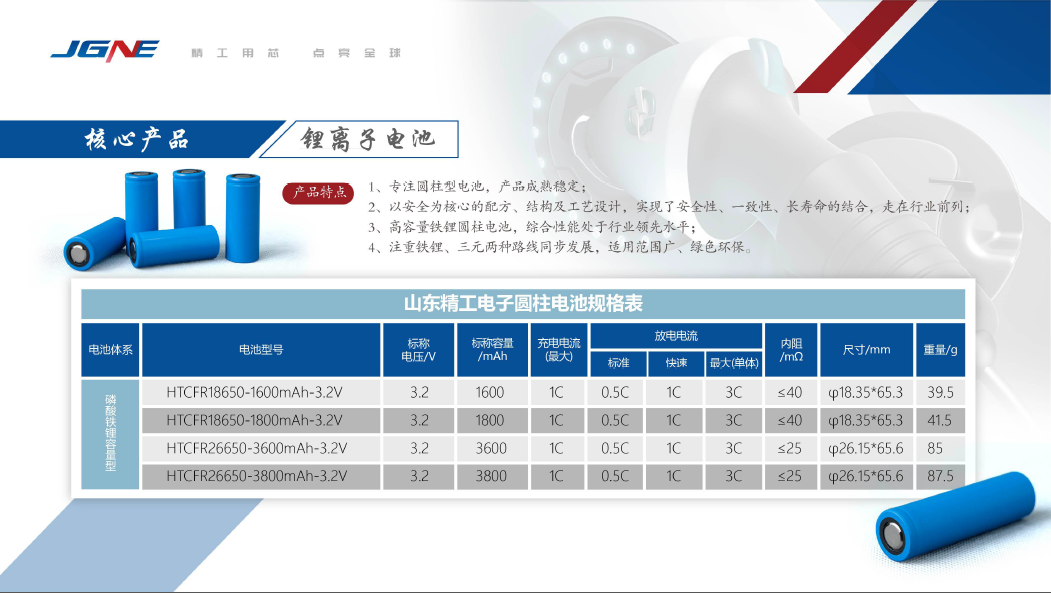山東精工電子科技有限公司(品牌:精工 JGNE)成立于2008年,是中國航天科工集團旗下的一家高新技術企業(yè)。山東精工JGNE的主要產品:超級電容、鋰離子電池等,致力于新能源產品的研發(fā)應用并使其產業(yè)化。主要客戶包括中船重工、美國通用電器GE、英國PK、德國BMZ等國內外知名企業(yè)。